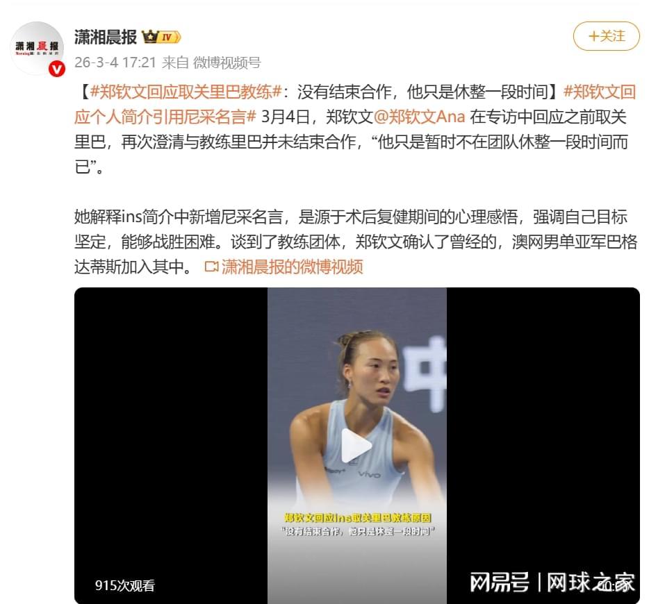 此外,关于郑钦文取关功勋教练佩雷里巴一事,中国一姐也在印第安维尔斯首次开口,进行了正面回应。