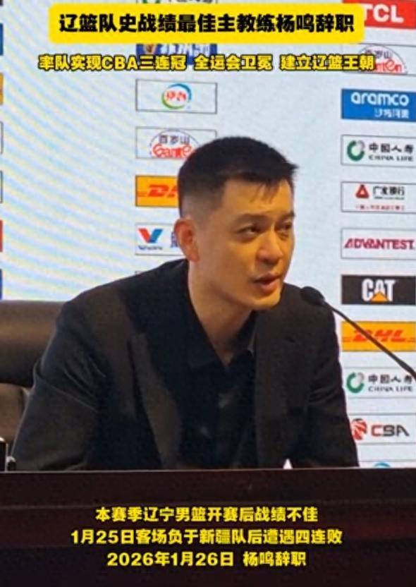 1月26日,辽宁男篮俱乐部官宣杨鸣由于身体原因辞去了主教练一职。